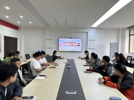 本科生第一党支部开展学习贯彻习近平新时代中国特色社会主义思想主题教育,集中学习《以中国式现代化全面推进中华民族伟大复兴》。支部书记陈洁主讲,支部全体党员参加。