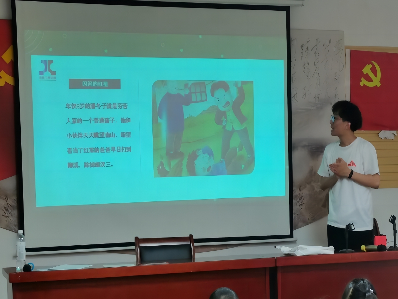 除宣讲外“重拾红色记忆”井冈山精神党员宣讲团还开展了丰富多样的实践活动。在建党节,宣讲团开展“七一”升国旗及党旗下重温入党誓词活动。在雄壮的国歌中,鲜艳的五星红旗冉冉升起,全体青年党员凝神肃立,仰望国旗行注目礼。升旗仪式结束后,在领誓人的带领下,全体青年党员举起右臂,面对党旗庄严宣誓:“我志愿加入中国共产党,拥护党的纲领......”铿锵有力的誓言体现了党员的昂扬斗志和不忘初心精神。