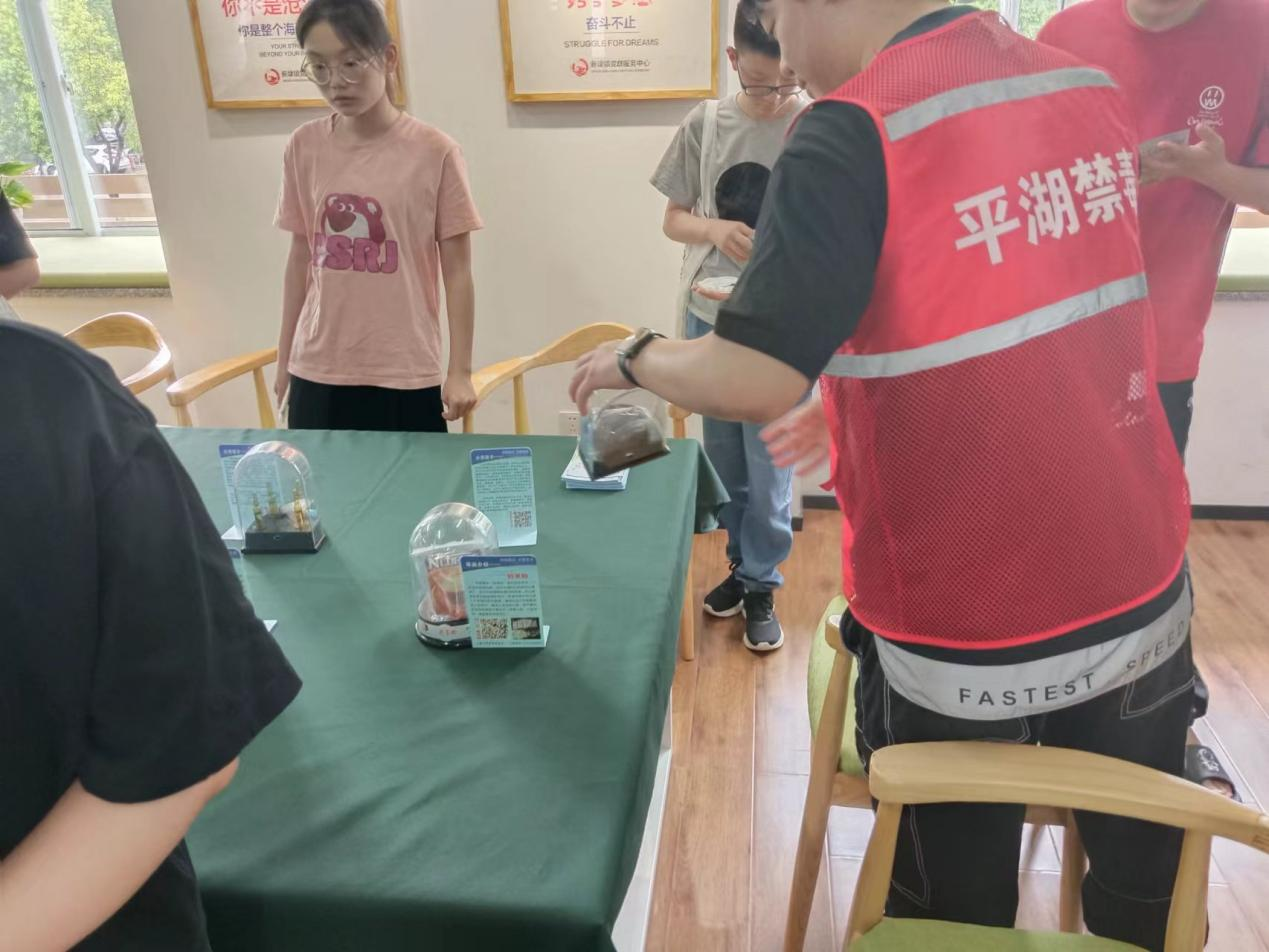 “传播法律知识,共创文明城市”实践队与平湖市壹起来公益发展中心合作,于2023年7月5日在新埭镇新埭党群服务中心开展了禁毒宣传暨心理健康教育活动。活动中,社区民警与实践队员分别开展了毒品知识讲解,心理健康教育,禁毒小游戏,参观毒品模型等活动,使更多的青少年能够牢固树立法治意识、安全意识,自觉远离毒品,健康积极生活。(撰稿:费白露 审核:李克明)