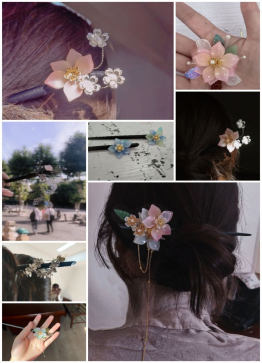 活动前,费白露先向同学们讲述我国簪花的历史十分悠久,头簪上各种花卉的形象如同成了幸福吉祥的化身,代表了古人的情感与情操,寄托了人们对美好生活的期许。之后,结合群里发送的手工制作发簪技巧的解说视频,费白露就发簪制作的过程进行简单的解说,通过现场演示和指导,为参与者提供了发簪制作的基本技能和知识。现场,结合不同同学的喜好,由院学生会工作人员将制作材料进行了有序的分配,鼓励同学们发挥创造力和想象力,自由发挥。活动现场气氛热烈,同学们认真制作,相互交流经验和技巧。一个多小时后,零零散散的材料,经过同学们自己的设计、制作搭配,成为了一支支精美的发簪,大家非常有成就感。此次活动不仅弘扬了中华优秀传统文化,也增强了同学们之间的交流,营造了良好的校园文化氛围,有利于培育学生理性平和、积极向上的健康心态。(撰稿:费白露 审核:李克明)