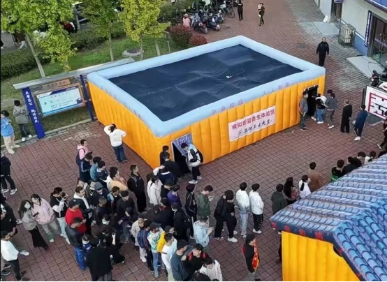 举行的2023年消防宣传月启动仪式暨消防知识宣讲、消防装备展示进校园活动,并参与体验模拟逃生演练。