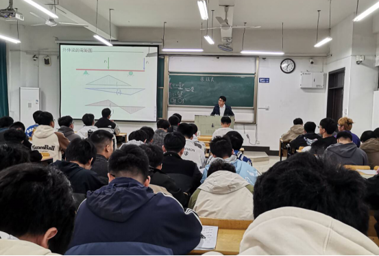 胡文锋老师在《材料力学B》5.6章节讲授时,通过“引经据典”和现场演示实验等手段生动而又形象地给学生介绍了提高弯曲强度的措施。回顾弯曲应力公式后,首先通过兴趣故事“奇怪的独木桥”的桥梁形式和双人配合方式生动形象地介绍了合理安排支座可以降低最大弯矩,通过中国古代建筑中的斗拱和悬臂木梁桥巧妙地介绍了合理布置载荷可以降低最大弯矩。然后,通过《营造法式》圆木取梁的精妙比例、天花板梁截面放置方式和工程截面设计实例进一步介绍了合理放置和截面设计可以增大抗弯截面系数。最后通过古代建筑和车辆叠板弹簧等工程实例介绍等强度梁可以降低材料用量达到安全又经济的要求。这次课堂既让学生们从一榫一卯中体会了传统建筑蕴含的高超技艺和文化智慧,又从工程实例感受到了学以致用、精益求精的工匠精神。