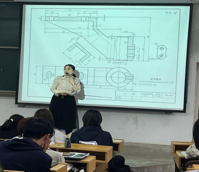 王秀珍老师围绕《机械制图》课程中的“零件图”开展示范教学,讲述了零件图的作用、内容、零件的设计和表达方法等,让同学们观看了往年机械设计创新大赛中的优秀作品,让他们知道“工程图”在产品设计中的重要地位,由“小米”汽车,“华为”手机等典型事例引入设计需要工匠精神和创造性思维,设计产品时要有精雕细琢,精益求精和造福社会的精神理念,引导同学们在学好基础知识的同时需要培养创新性思维,为后面参加“挑战杯”等学科竞赛做充分准备。