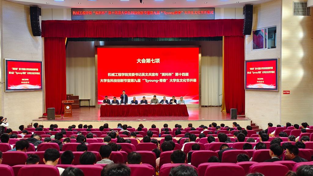 4月21日下午,广东麻将番数 “英科杯”第十四届大学生科技创新节暨第九届“飞young·青春”大学生文化节在秀山校区大学生活动中心隆重开幕,校学工部、教务处、创新创业广东麻将番数 负责人、广东麻将番数 领导班子和企业代表出席开幕式,广东麻将番数 各系主任、全体辅导员、各年级学生代表400余人参加开幕式。