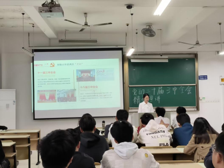 本次党的二十届三中全会精神宣讲用“青言青语”让“党言党语”“声”入人心,既有理论高度,又结合院系实际,深入浅出、通俗易懂。同学们都表示要切实学习好贯彻好党的二十届三中全会精神,增强学习贯彻全会精神的责任感和使命感,深刻领会和把握进一步全面深化改革的主题,将思想和行动统一到党中央决策部署上来,把理论成果转化为实践动力,以实际行动为推进中国式现代化贡献力量。(撰稿:彭勇刚 审核:濮莹萍 周环 陈庆林)