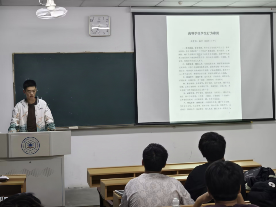 2024级新生进一步明确了学习生活中的“警戒线”和“红绿灯”,增强了同学们的纪律意识,为尽快适应校园学习生活奠定了扎实的基础。(撰稿:陈洁 审核:濮莹萍 周环 陈庆林)
