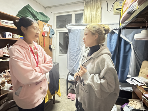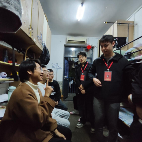 本科生第三党支部组织学生党员“亮身份”走进新生宿舍,与新生面对面交流。