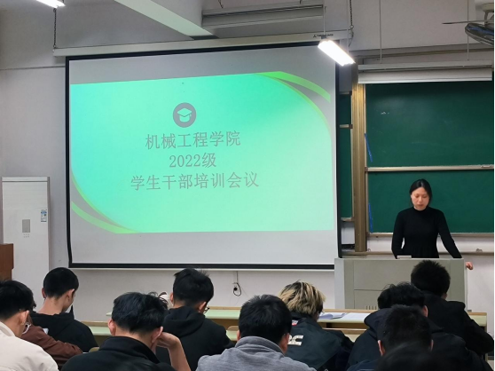 在机械楼405教室召开2022级学生班委培训会,会议由2022级辅导员濮莹萍、孙紫玮主持,2022级全体班委学生参加。