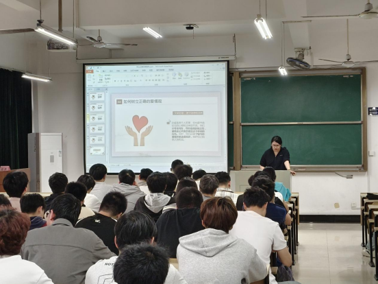 2022级在机械楼举办了树立大学生正确恋爱观念讲座,此次讲座由22级辅导员濮莹萍、孙紫玮主持,22级全体学生参加。