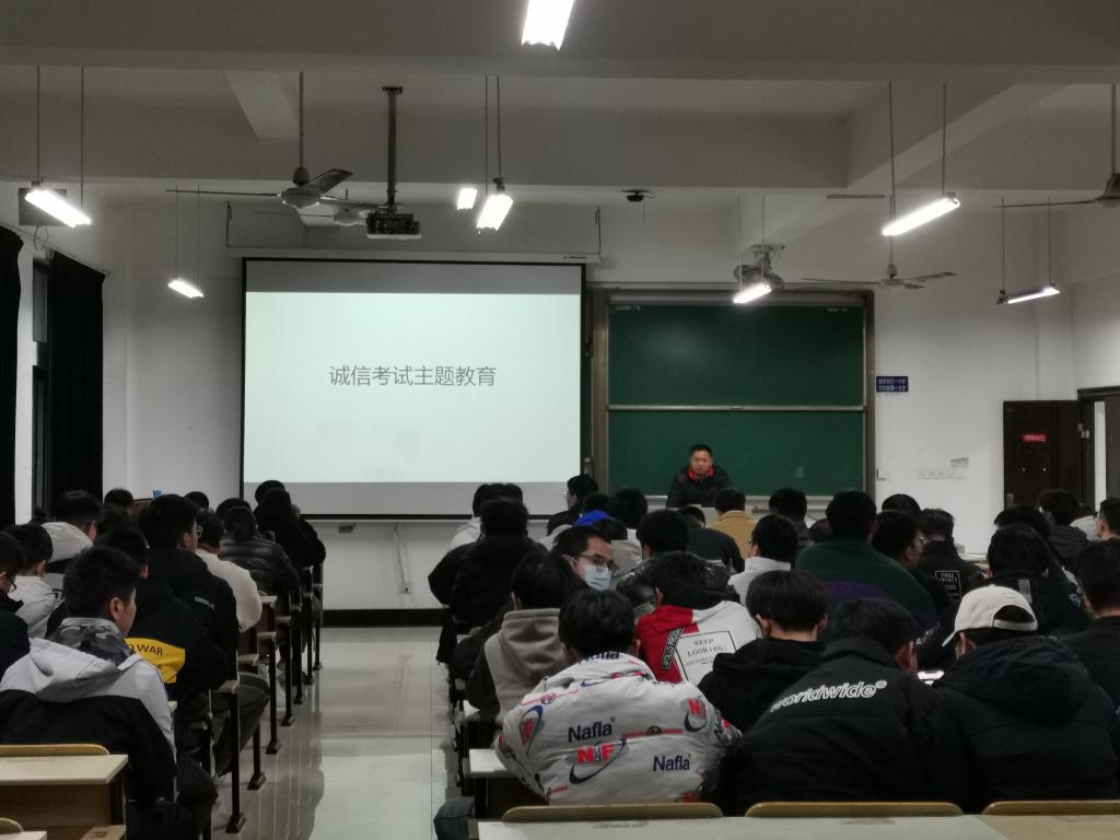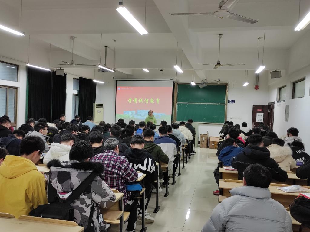 在机械楼405与407教室组织考研学生召开考前教育大会,会议分别由2018级辅导员章军和张敏主持。