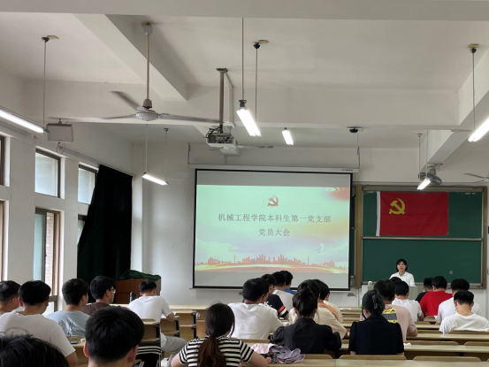 本科生第一党支部在机械楼407教室召开支部党员大会。支部党员共57人,实到53人,其中正式党员28人,实到25人,另有支部本学期发展对象17人参会,会议由支部书记陈洁主持。大会议题包含2项:一、讨论陈宇等16名预备党员转为正式党员事宜;二、讨论接收吴少华等17名同志为中共预备党员事宜。
