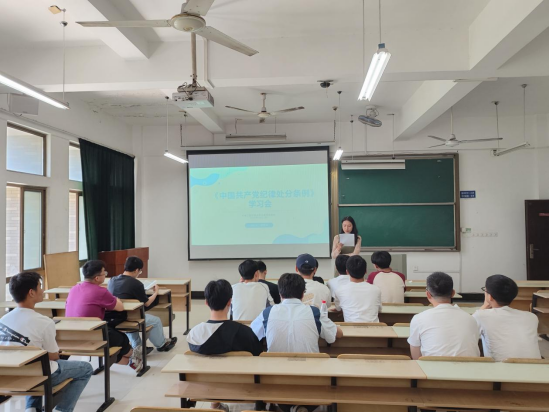 本科生第四党支部集中学习新修订的《中国共产党纪律处分条例》,会议由支部书记濮莹萍主持,全体支部成员参加此次学习会。