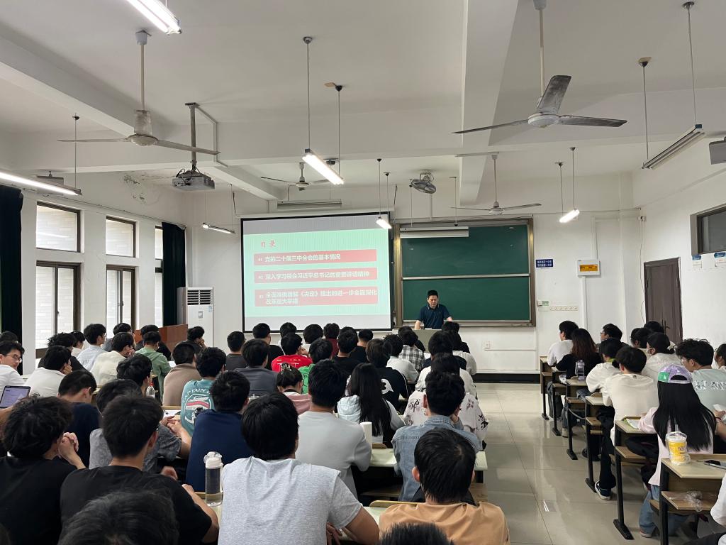 吴文兵从党的二十届三中全会的历史意义切入,指出此次全会是在中国式现代化全面推进的关键时期召开的一次重要会议,审议通过的《中共中央关于进一步全面深化改革、推进中国式现代化的决定》为新时代深化改革绘制了“施工图”,彰显了党中央将改革进行到底的坚定决心。吴文兵强调,全会围绕“七个聚焦”部署了一系列改革任务,涵盖教育、科技、人才等关键领域。他结合高校实际,向全体学员提出“三个维度”学习要求:一是学政策、提站位;二是学方法、强思维;三是学精神、担使命。针对入党积极分子的特点,他勉励全体学员争做素质过硬的新时代青年,争做奋勇争先的实干先锋,争做胸怀世界的开放人才。