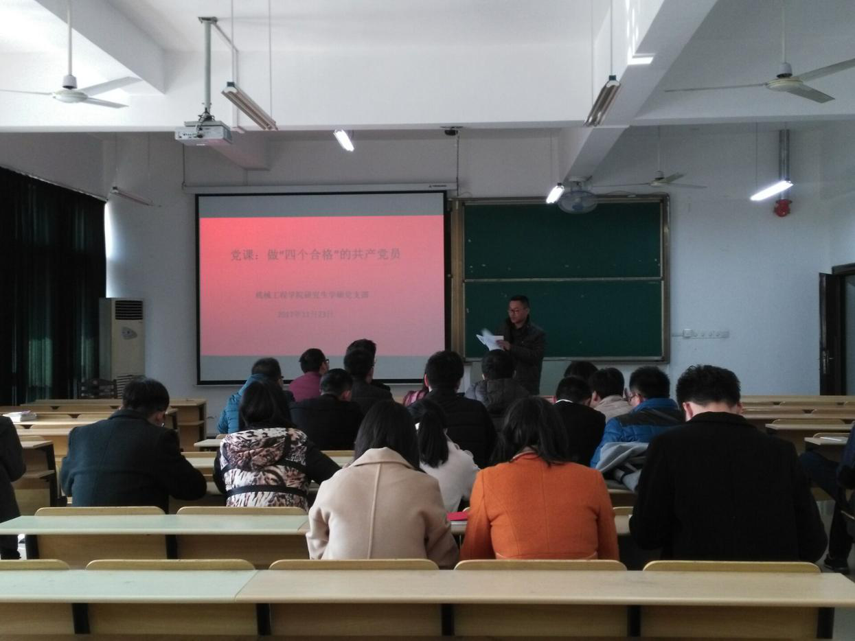 学硕党支部在机械楼405教室集中上做“四个合格”的共产党员的主题党课。党课由该党支部书记杨龙主讲。