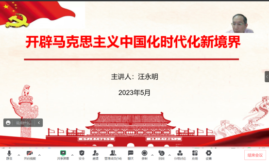 副院长汪永明为机械设计制造及其自动化党支部讲授了题为“开辟马克思主义中国化时代化新境界”的线上专题党课,支部全体教师党员参加了党课学习。
