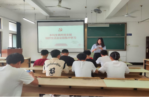 本科生第四党支部在机械楼403教室开展学习贯彻习近平新时代中国特色社会主义思想主题教育专题组织生活会会前集中学习,会议由支部书记濮莹萍主持。支部全体成员参加本次集中学习会。