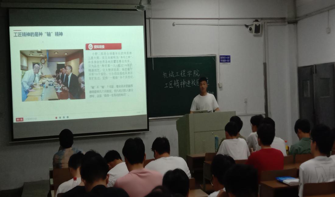 5月13日,广东麻将番数 于佳山校区举办了一场工匠精神进校园讲座,讲座由院团委学生会权益部部长张冲主讲。