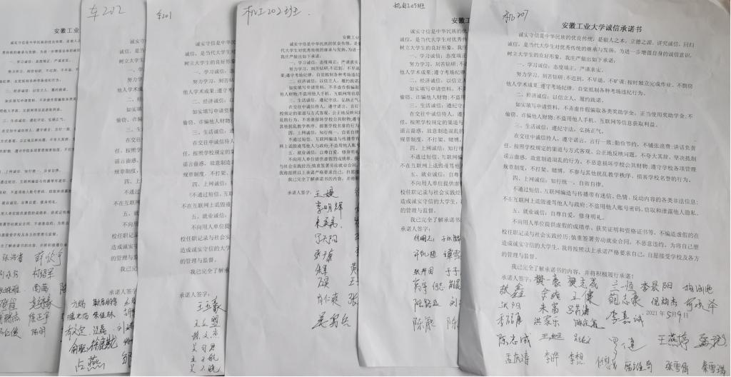 诚信承诺书”,承诺学习诚信、经济诚信、生活诚信、交往诚信、网络诚信、就业诚信等。最后各班发出诚信共勉:履约践诺,以信立人,弘扬正气。