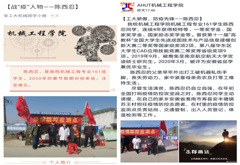 通过官微、官Q平台,宣传身边的“抗疫逆行者”,为广大青年树立标杆,引导同学们向先进看齐。