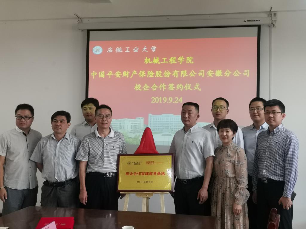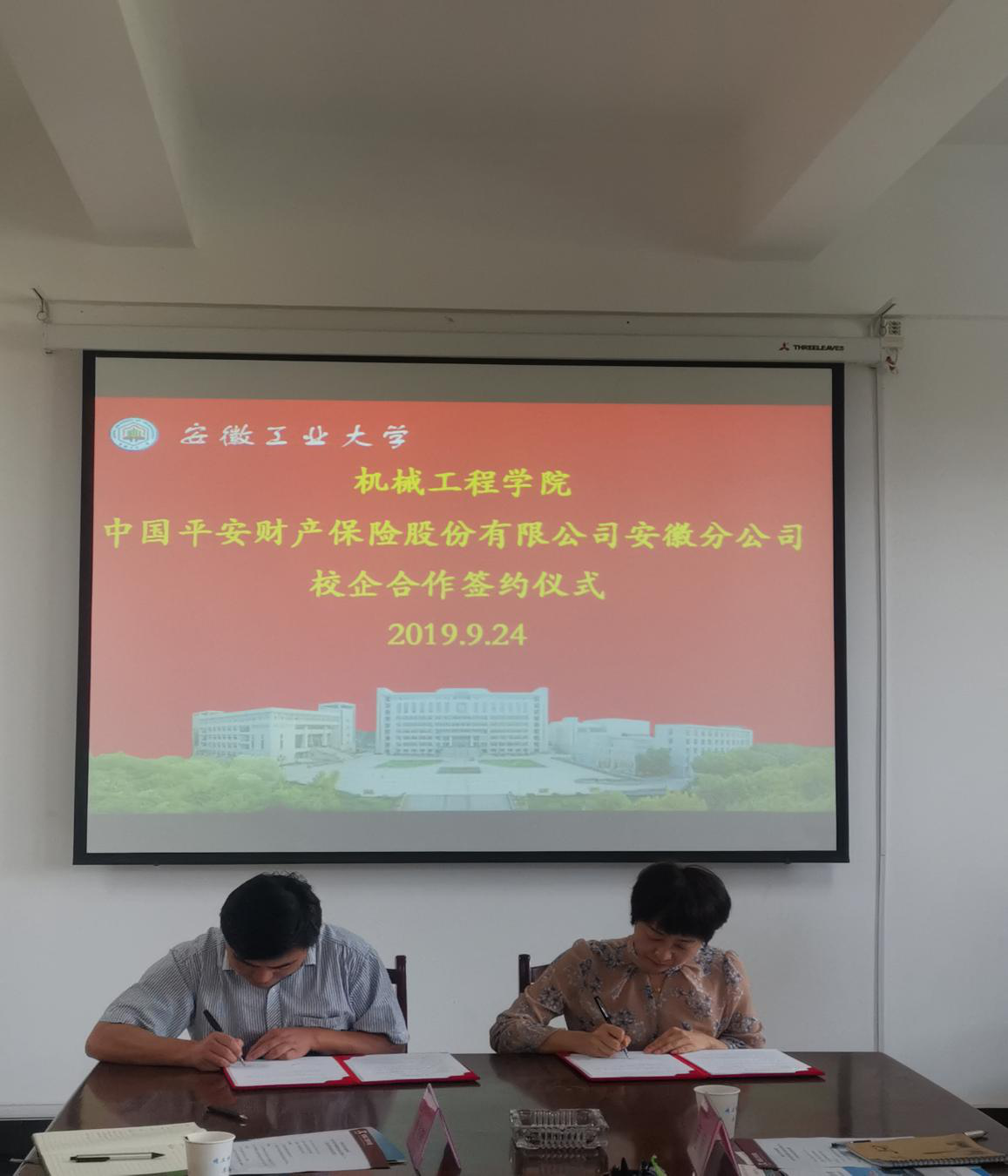 与中国平安财险股份有限公司安徽分公司“校企合作”签约仪式在机械楼302会议室举行。中国平安财险股份有限公司马鞍山中心支公司总经理陈青、中国平安财产保险股份有限公司安徽分公司人力资源部经理孔凡荣、安徽分公司车意理赔部经理吴刚、安徽分公司车意理赔部车物管理团队经理朱佳、安徽分公司人力资源部发展规划室经理方业成、马鞍山中心支公司理赔部经理张永鹏、广东麻将番数