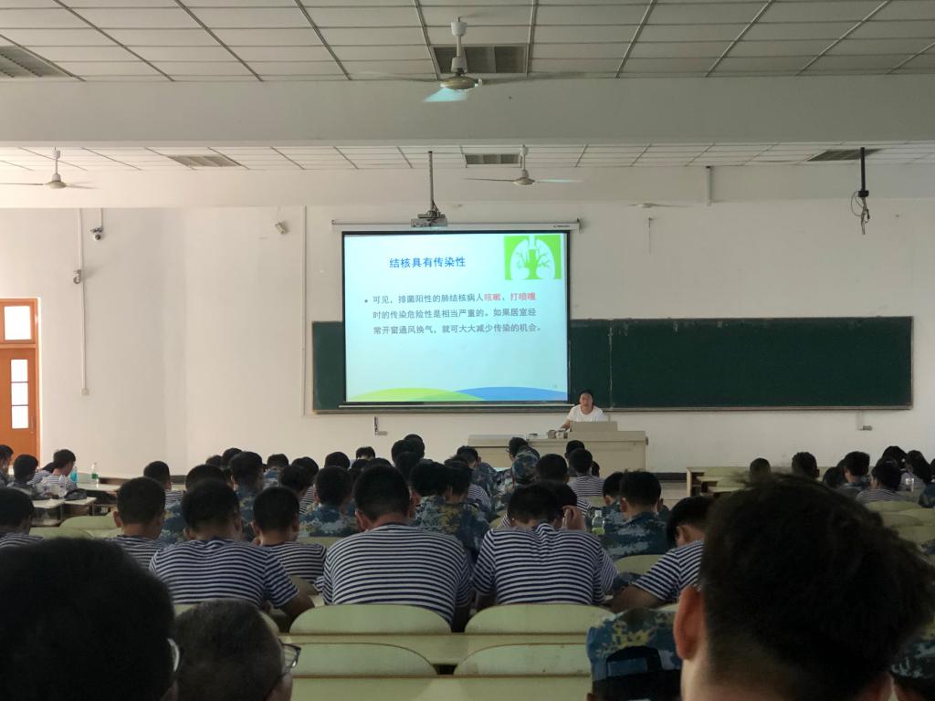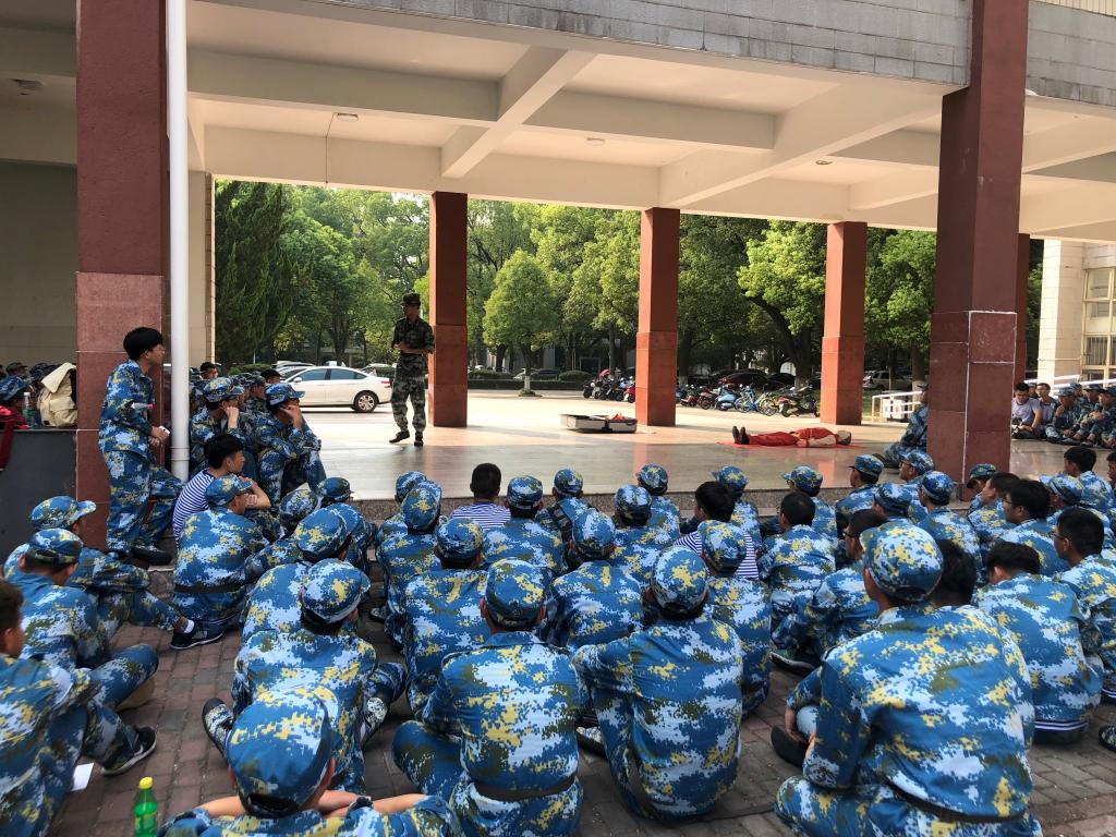 全体2019级新生开展了卫生健康教育和医疗救护训练,此次活动由校医院工作人员和军训教官担任主讲。