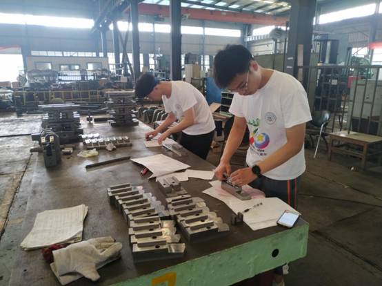 学子走进双益机械制造有限公司开展“百炼成钢,实践成才”暑期社会实践活动,实践队根据队员的自主意愿,分成了生产组、工艺组、采购组、品质组,明确分工,各司其职。