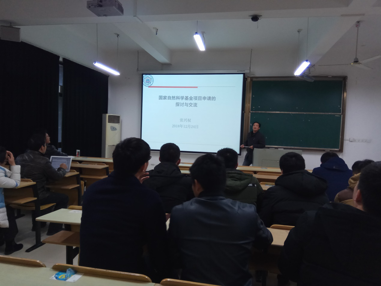 张兴权教授应邀做辅导报告,准备申报基金的教师参加了报告会。科研副院长刘庆运主持了报告会。