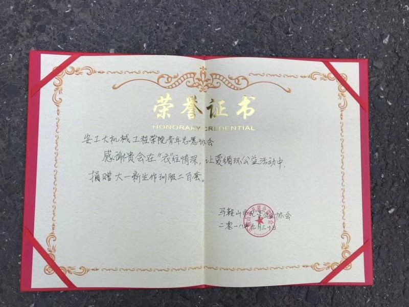 青年志愿者协会颁发荣誉证书。