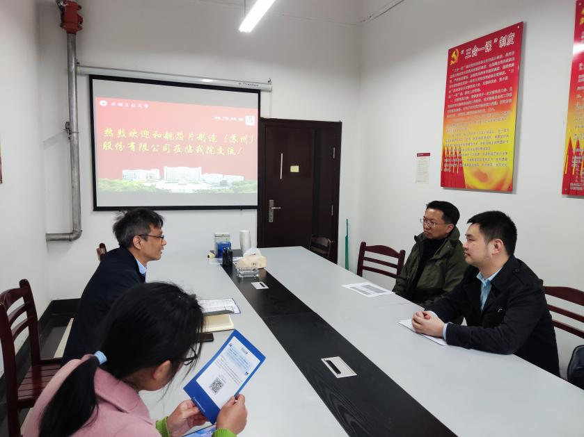 与和舰芯片制造(苏州)股份有限公司在机械楼306会议室召开访企拓岗座谈会,和舰芯片制造(苏州)股份有限公司人力资源处处长陈彦伟、人力资源处主任管理师吴添与广东麻将番数