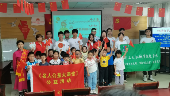 图为实践队员、小朋友和老师们的合照纪念。