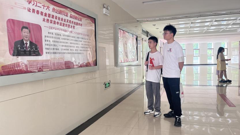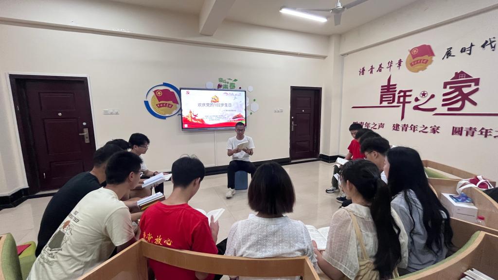 图为实践队员在学习二十大报告