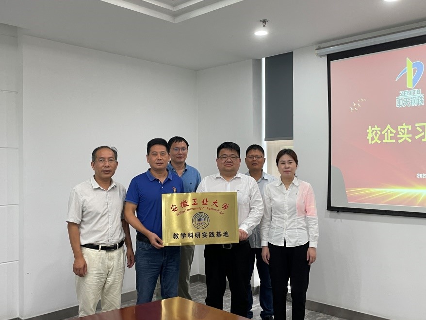 和中天钢铁集团有限公司签署共建“教学科研实践基地”合作协议,吴文兵书记与吴敏刚部长一起为基地进行了授牌。(撰稿:魏志刚,杨树宝 审核:吴文兵,汪永明)