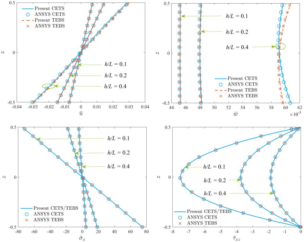 (悬臂深梁厚度方向的位移与应力)