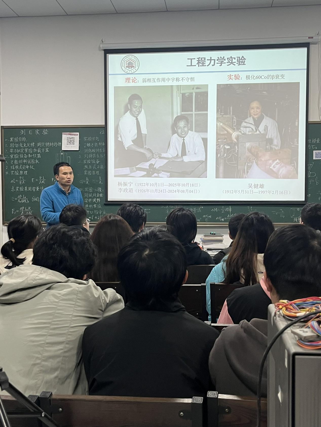 黄志来老师在讲授拉伸、压缩和纯弯曲实验时,以著名科学家杨振宁为切入点,通过实验的置信度、可度量、可操作性、可观测性、误差等讨论实验的本质,引入丰富的生活实例进行讲解,如:考试其实也是测试,一定存在误差,所以用平时成绩补偿误差,以提高置信度,平时成绩是“科学的结果”。从“秦始皇统一度量衡”的意义,引出力学测试的标准,从广东麻将番数