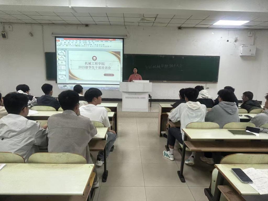 在佳山校区教三南103教室召开2025级学生班干部培训会,由大一辅导员毕苗老师主持,大一全体班干部参加。