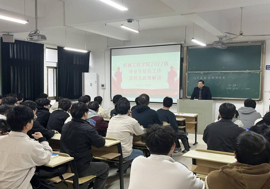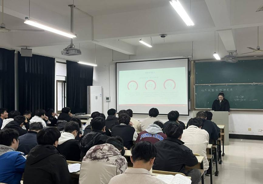 辅导员孙老师结合往年征兵工作情况,详细介绍了征兵政策、报名流程、待遇保障等相关内容,并就同学们关心的学业衔接、未来发展等问题进行现场答疑,帮助毕业生全面了解政策、消除顾虑。