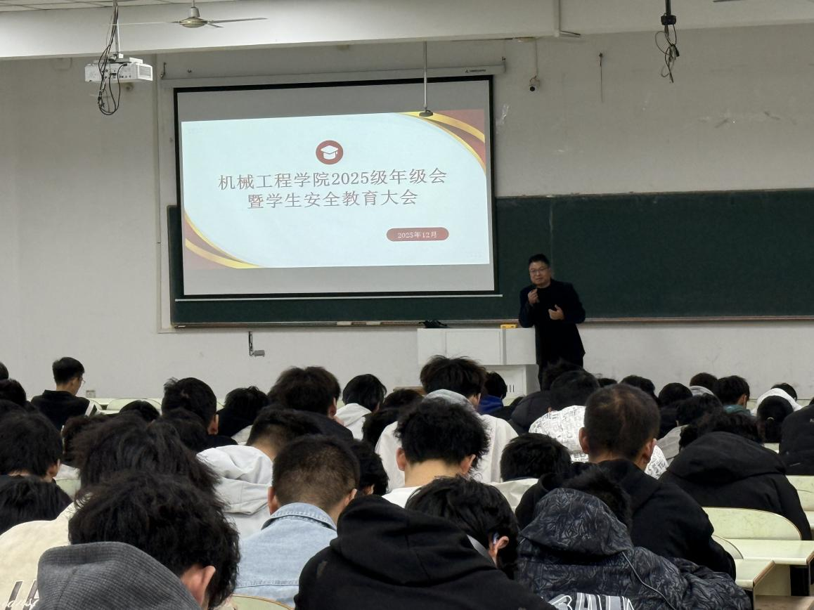 在佳山校区教三南203召开2025级年级会暨安全教育大会,此次会议由辅导员毕苗、董春辉主持,2025级学生参加。