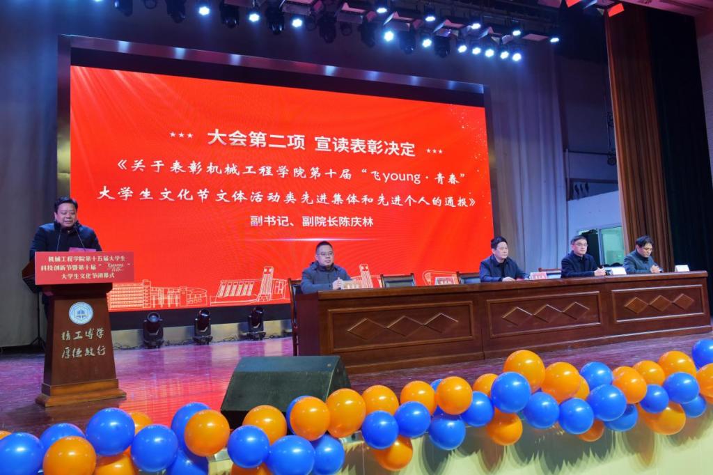 第十五届大学生科技创新节暨第十届“飞young·青春”大学生文化节闭幕式在秀山校区大学生活动中心隆重举行。院党委书记吴文兵、院长刘庆运、院党委副书记、副院长陈庆林、副院长饶思贤、童宝宏出席开幕式,各系主任、班主任、全体辅导员、各年级学生代表共同见证这一荣耀时刻。闭幕式由广东麻将番数
