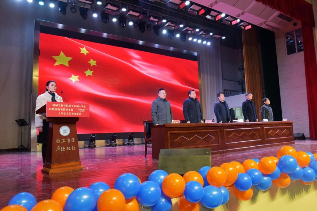 活动伊始,在场师生共同观看了回顾视频,一张张精彩瞬间、一幕幕奋斗场景,生动再现了科技创新节与文化节期间的丰硕成果与青春风采,引发全场共鸣。随后,闭幕式在庄严的国歌声中正式拉开帷幕。