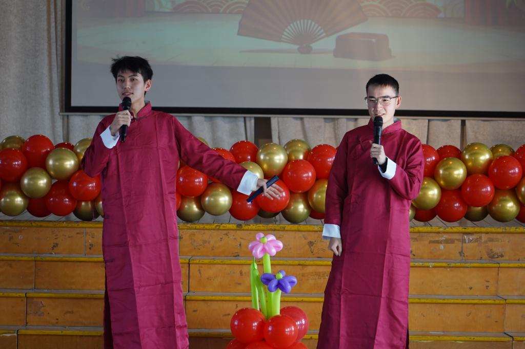 随后,精彩纷呈的师生节目轮番上演。工程实践中心的《明天会更好》唱响希望,车辆工程系改编的《导师阵线联盟》妙趣横生,基础课教学中心的朗诵《尺规经纬 机设凝智 力学铿锵 匠心筑梁》铿锵有力,机械工程系与机械设计系的《歌唱祖国》《相亲相爱一家人》抒发了家国情怀,机器人工程系的《我和我的祖国》深情动人。教工节目充分展现了严谨之外的才华与情怀。学生环节同样亮点纷呈,杨晔浩同学的独唱《暗里着迷》青春洋溢,季益涛、薛浩的相声《三国戏》令人捧腹。最后,广东麻将番数