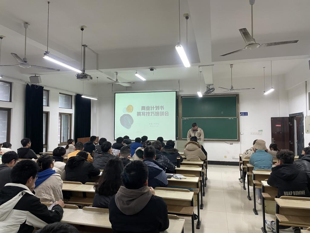 创新创业典型、机198班陈旭康围绕“商业计划书撰写技巧”为同学们进行了详细的解说,从商业计划标题的设计,到优势的分析,再到推广方式的选择都进行了说明。