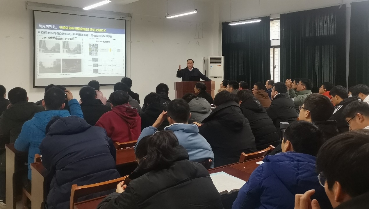 师生提供了合作交流平台。通过殷国栋教授深入浅出的讲解,使老师和同学们对电动汽车感知及控制融合验证平台的搭建、车辆外部环境智能融合感知关键技术及现有技术难点等有了比较深刻的了解。