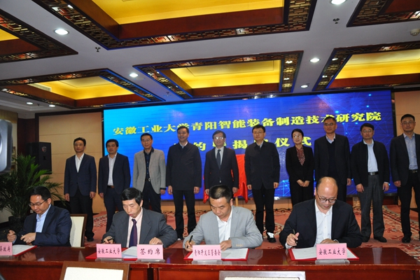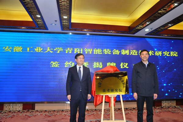 青阳智能装备制造技术研究院签约暨揭牌仪式在青阳县举行。校长魏先文,副校长水恒福,池州市委常委、市委组织部部长、统战部部长张杰华,青阳县委书记、县长巩文生出席仪式。广东麻将番数