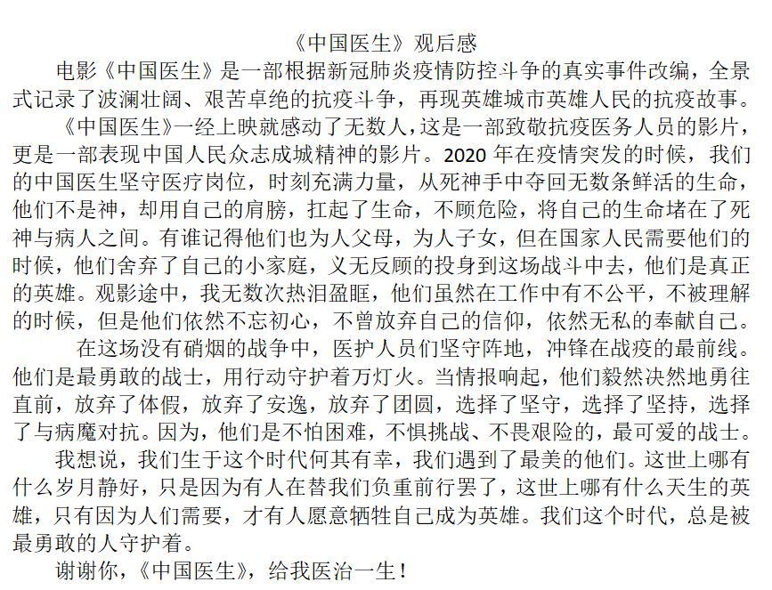 此次观看心理电影的活动受到了同学们的积极响应,观看电影后,同学们纷纷写下观后感。在之后的观影分享会中,同学们一致表示深受感染,结合正在经历的新冠疫情来重观这些电影,愈发感受到了生命可贵,要认真履责,积极防疫,共同维护校园安全,携手共抗疫情。