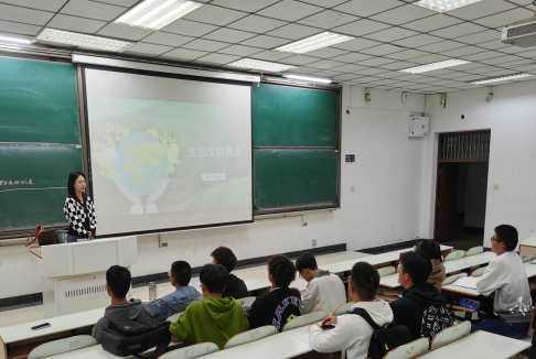 班会伊始,由辅导员濮莹萍为学生普及生态文明的相关知识。濮莹萍先从生态文明的内涵和意义两个层面重点强调了建设生态文明的重要性所在;而后以我国生态文明建设的发展建设和主要成就为主要事实依据向同学们展示了国家在“建设美丽中国”方面所做出的巨大努力,这不仅宣传普及了生态环境保护的基础性知识,更进一步提升了同学们生态文明的理念。