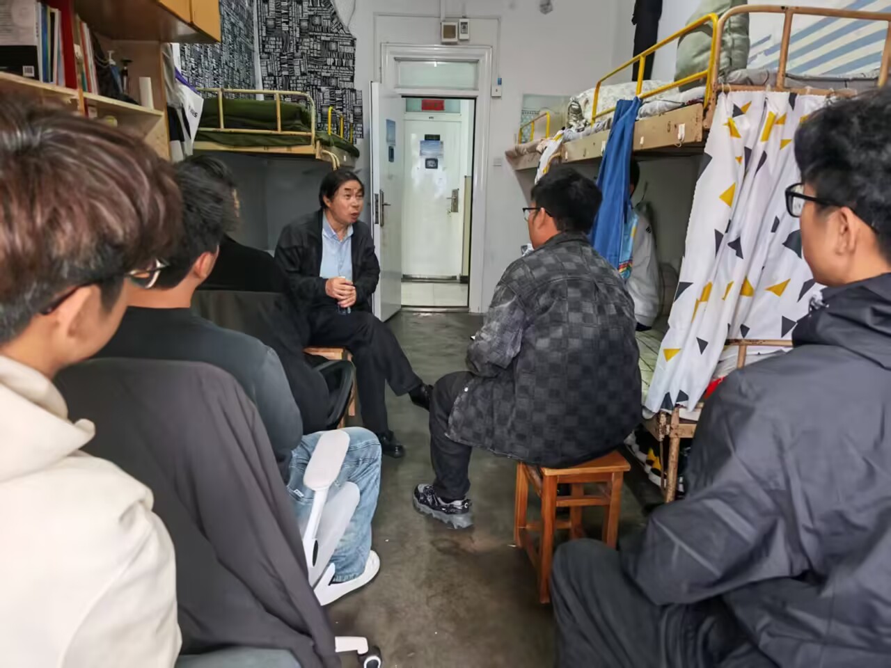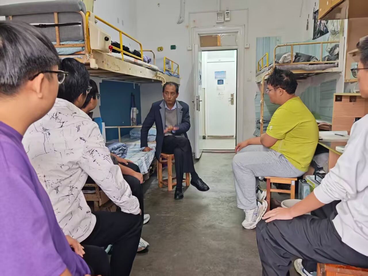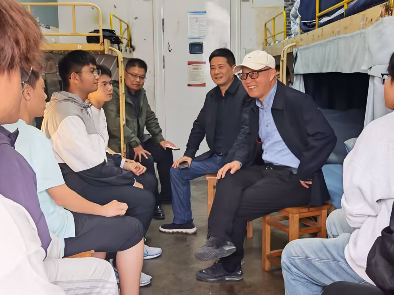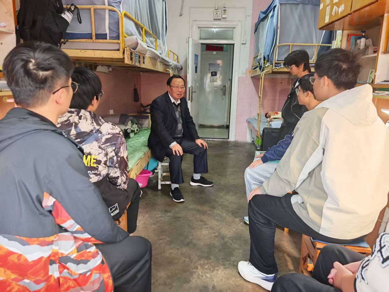 刘明在交谈中表示,大学是人生成长成才的关键阶段,希望同学们要有坚定的政治方向,要培养创新思维和创新精神,在学习好专业的同时,培养自己的兴趣爱好,要养成好的生活习惯,加强体育锻炼,维护好同学关系,珍惜时光,做好规划,共同营造积极向上、团结友爱的宿舍氛围。同时勉励新生要志存高远,脚踏实地,勤奋学习,勇于探索,在未来的大学生涯中不断取得新的进步。