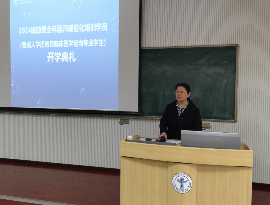 2024级助理全科医师规范化培训学员(暨成人学历教育临床医学定向专业学生)开班/开学典礼在第二教学楼81教室举行。来自密云、大兴、平谷、通州、房山、延庆、昌平、顺义、门头沟、怀柔等10个区的社区卫生服务中心/乡镇卫生院的135名2024级助理全科医师规范化培训学员参加了典礼。