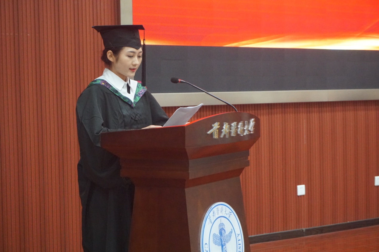 路孝琴书记、吴浩院长、杜娟副院长为51名获得学士学位的毕业生行拨穗礼并授予学位;杜娟副院长为优秀毕业生颁发了优秀毕业生证书。
