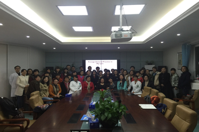 附属复兴医院月坛社区卫生服务中心丁静副主任、尹朝霞博士、于爽医生、丁兰主任护师四位讲者。前三位讲者分别用英语介绍了加拿大、英国、美国全科医学的发展、全科医生的培训与服务情况。丁兰主任护师介绍了日本的社区护理及其在日学习体会。四位讲者与现场的全科研究生进行了互动,同学们争先用英语提问,各位老师对每一问题认真细致的进行解答,同学们收获颇丰。