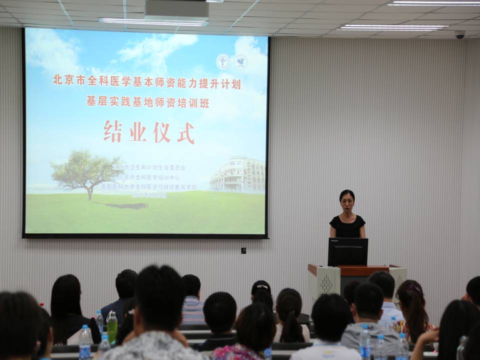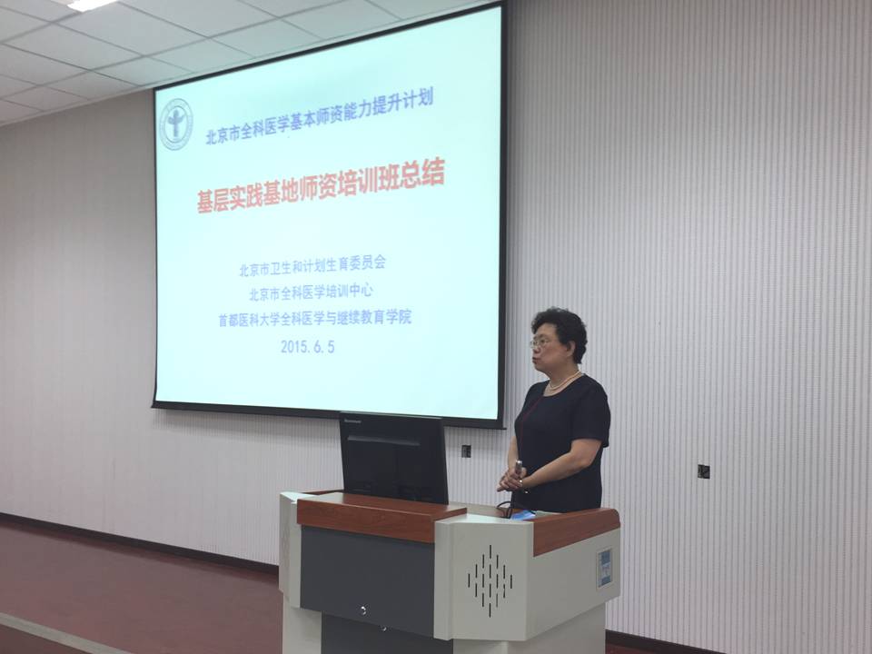对我们工作的支持、对大家的关怀体贴、教学上辛勤的付出表示衷心的感谢。建立全科医生制度是基层卫生工作的重点工作,培养一支高素质高水平的全科医生队伍是重中之重的工作。没有人就没有全科事业,如何来培养一支合格的全科医生队伍就是我们为什么要做全科师资培训的出发点,没有一支好的师资队伍很难保证培养出一支合格的全科医生队伍。基层实践基地师资培养是为了今后实现社区人培养社区人的培训理念的重要措施。今后在基本师资队伍中还将选拔100名骨干师资做优师培训计划,希望大家在今后教学工作中把学到的东西将理论与实践结合起来,不断积累完善自己,提高教学能力;通过教学相长,促进日常岗位胜任力达到更高的层次,提升北京市社区卫生服务水平,为奠定基层首诊、分级诊疗、急慢分治的诊疗模式做好人才储备,为我们社区卫生服务培养出合格的、优质的、结构合理的、数量适宜的全科医生。希望大家继续支持我们的师资培训。”